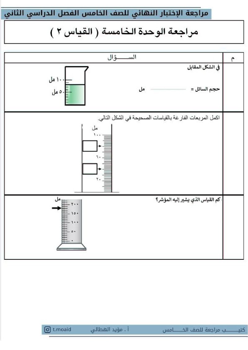 الوحدة الخامسة تمارين القياس العلمي - رياضيات الصف 5 الفصل 2