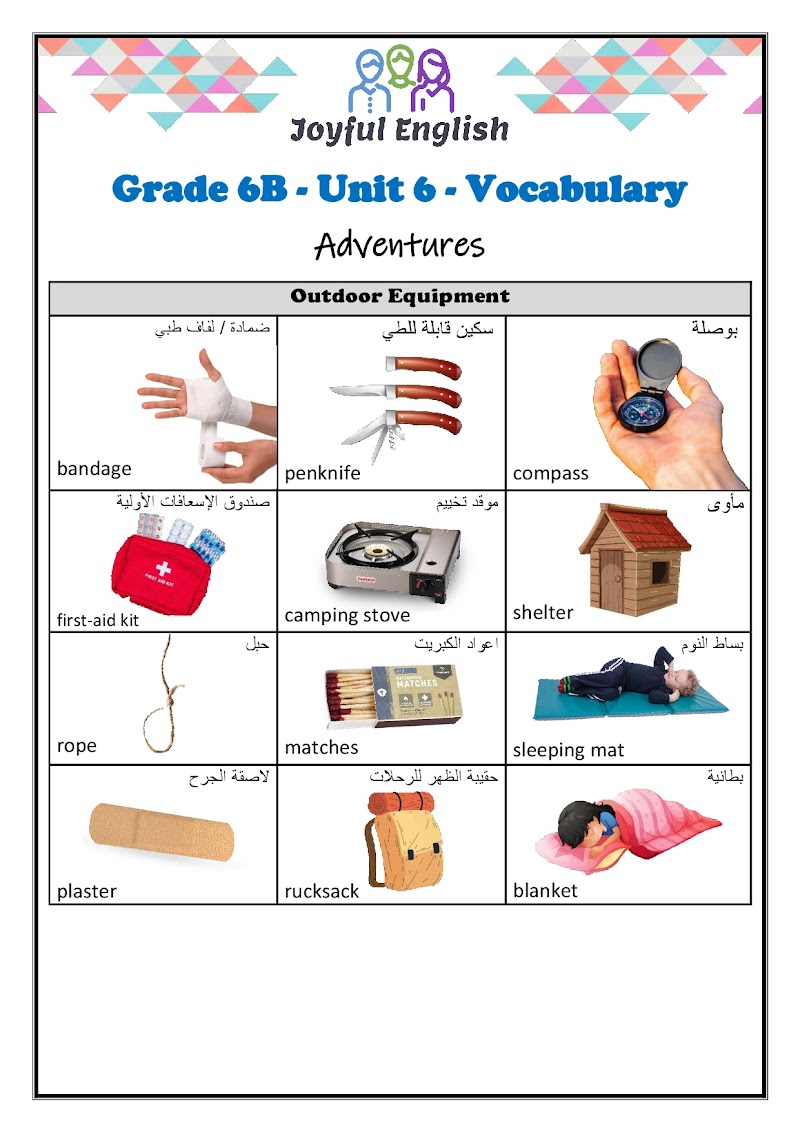 مفردات الوحدة السادسة أدوات المغامرات والإصابات والأمراض - إنجليزي الصف 6 الفصل 2