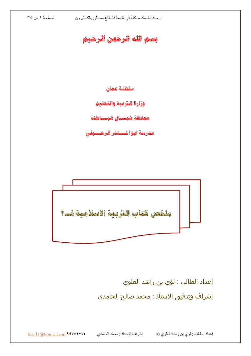 ملخص شامل المنهج سؤال وجواب - إسلامية الصف 12 الفصل 2