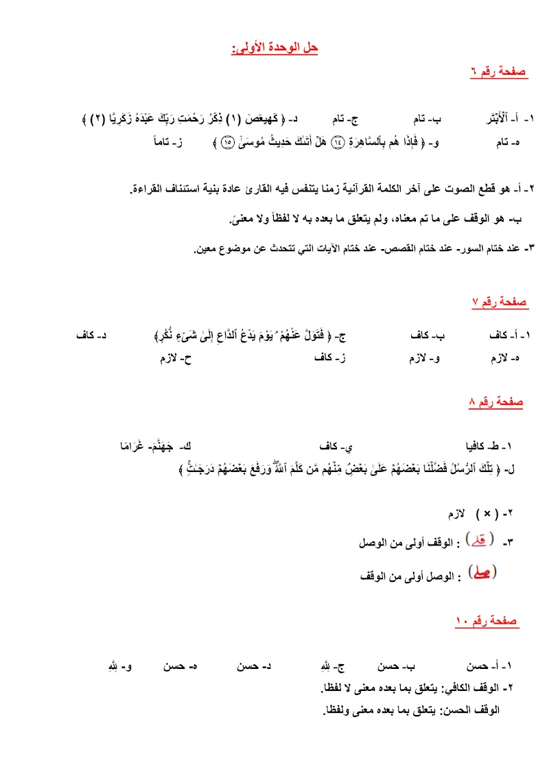 حل تمارين الكتاب في الوحدة الأولى التجويد - إسلامية الصف 12 الفصل 2