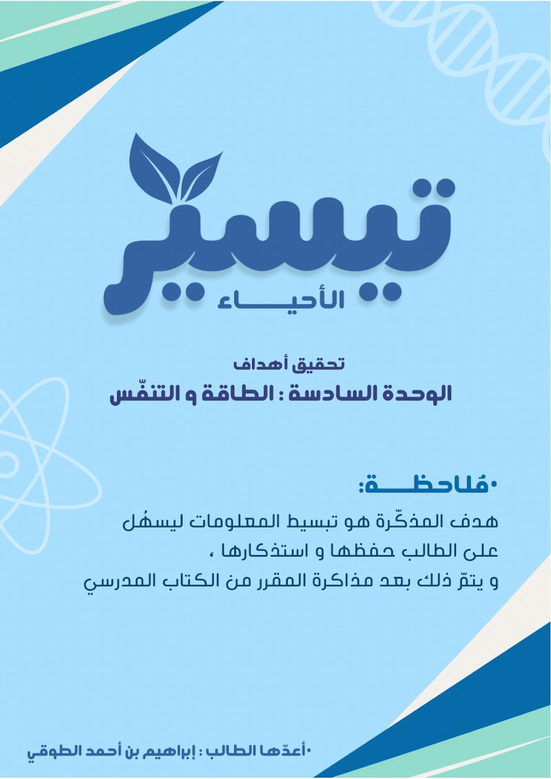 تيسير الأحياء ملخص الوحدة السادسة الطاقة والتنفس - أحياء الصف 12 الفصل 2