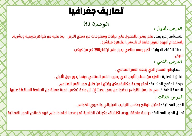 تعاريف المادة للوحدتين الأولى والثانية - جغرافيا الصف 12 الفصل 2