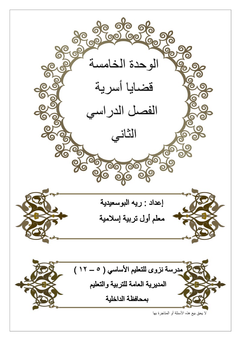 أسئلة الوحدة الخامسة قضايا أسرية - إسلامية الصف 12 الفصل 2