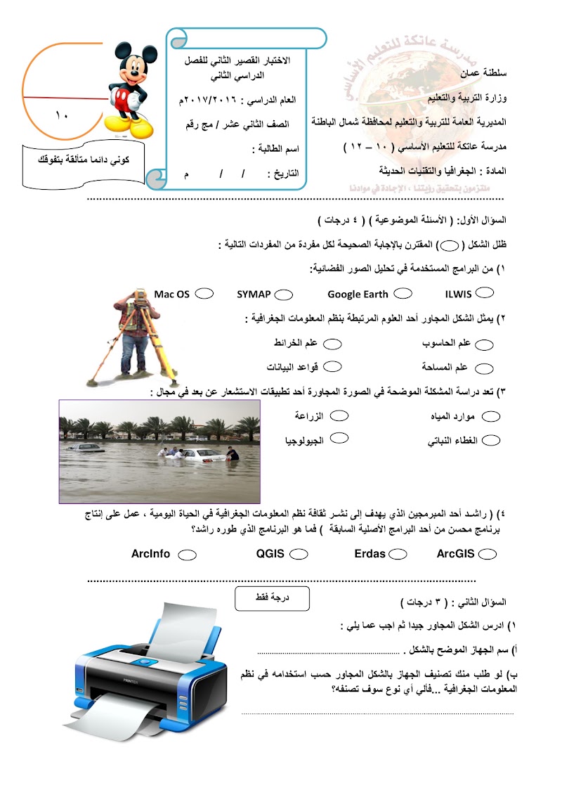 تجميع الاختبارات القصيرة الثانية - جغرافيا الصف 12 الفصل 2