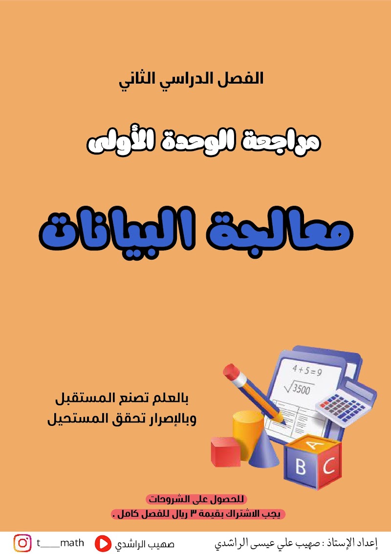 تقدم مراجعة الوحدة الأولى "معالجة البيانات" لطلاب الصف الخامس في مادة الرياضيات خلال الفصل الدراسي الثاني فرصة قيمة لتثبيت المفاهيم الأساسية التي تعلموها. تساعد هذه المراجعة الطالب على استرجاع مهارات جمع البيانات وتنظيمها في جداول، ثم تمثيلها بيانياً باستخدام الأعمدة أو الخطوط، مما يسهل عليه قراءة المعلومات واستخلاص النتائج البسيطة منها. كما أن التركيز على تفسير هذه البيانات في سياق واقعي يقوي فهم الطالب للربط بين الرياضيات وحياته اليومية، مما يجعله أكثر استعداداً للدروس القادمة ويبني ثقته في تعامله مع هذا الجزء من المنهج.