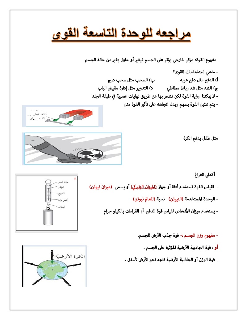 📁 مراجعة شاملة لوحدة القوى المفاهيم الأساسية أنواع القوى والتطبيقات العملية - علوم الصف 7 الفصل 2