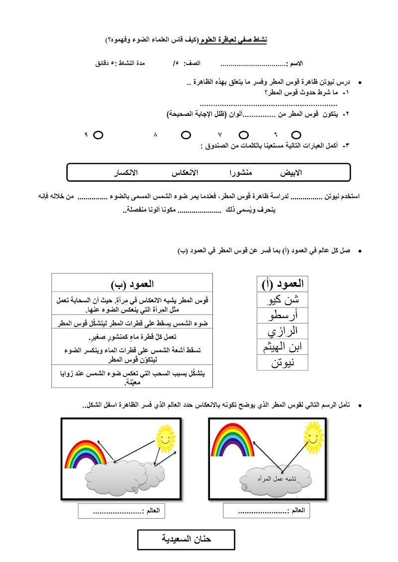 أنشطة صفية شاملة للمنهج للعباقرة - علوم الصف 5 الفصل 2