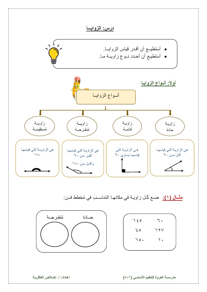 درس الزوايا وأنواعها وقياسها - رياضيات الصف 5 الفصل 2