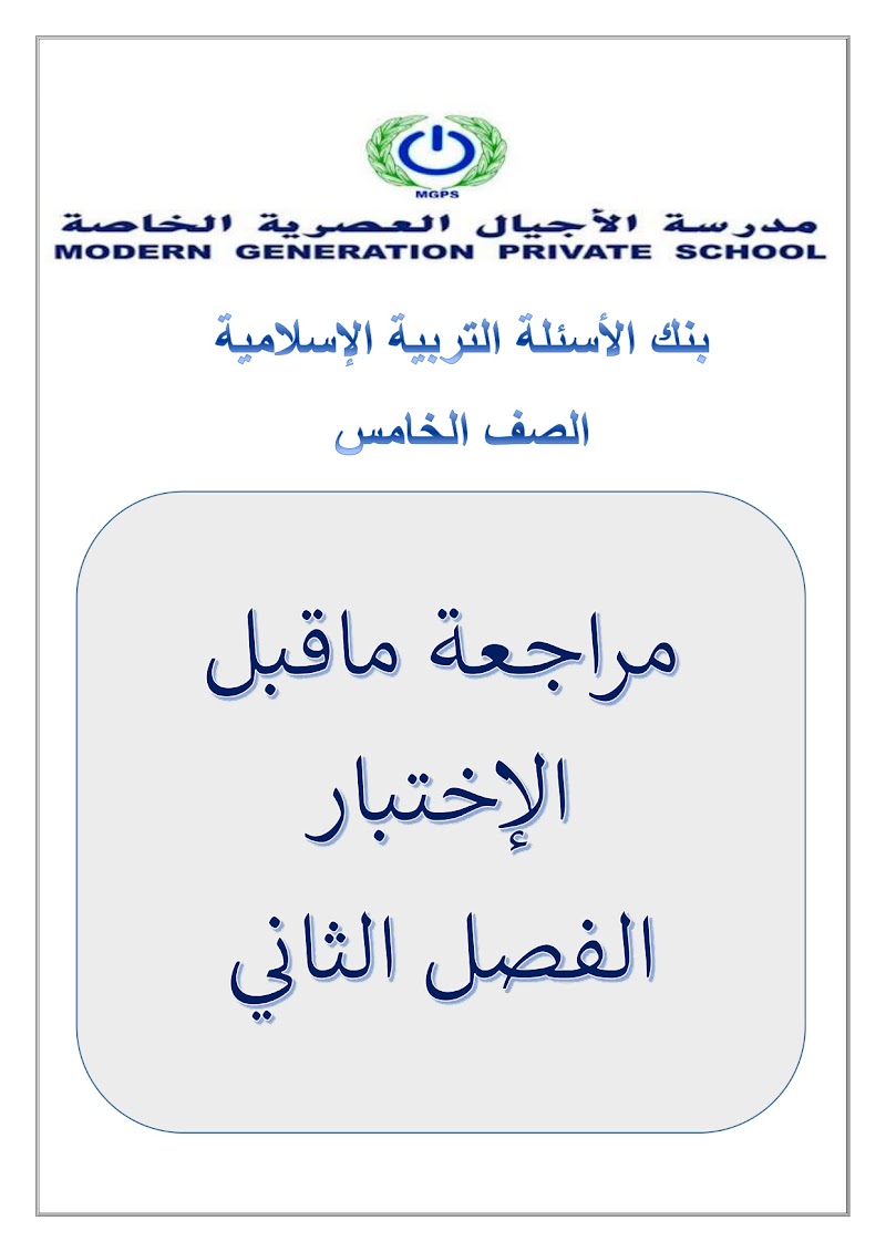 مراجعة ماقبل الاختبار بنك أسئلة - إسلامية الصف 5 الفصل 2